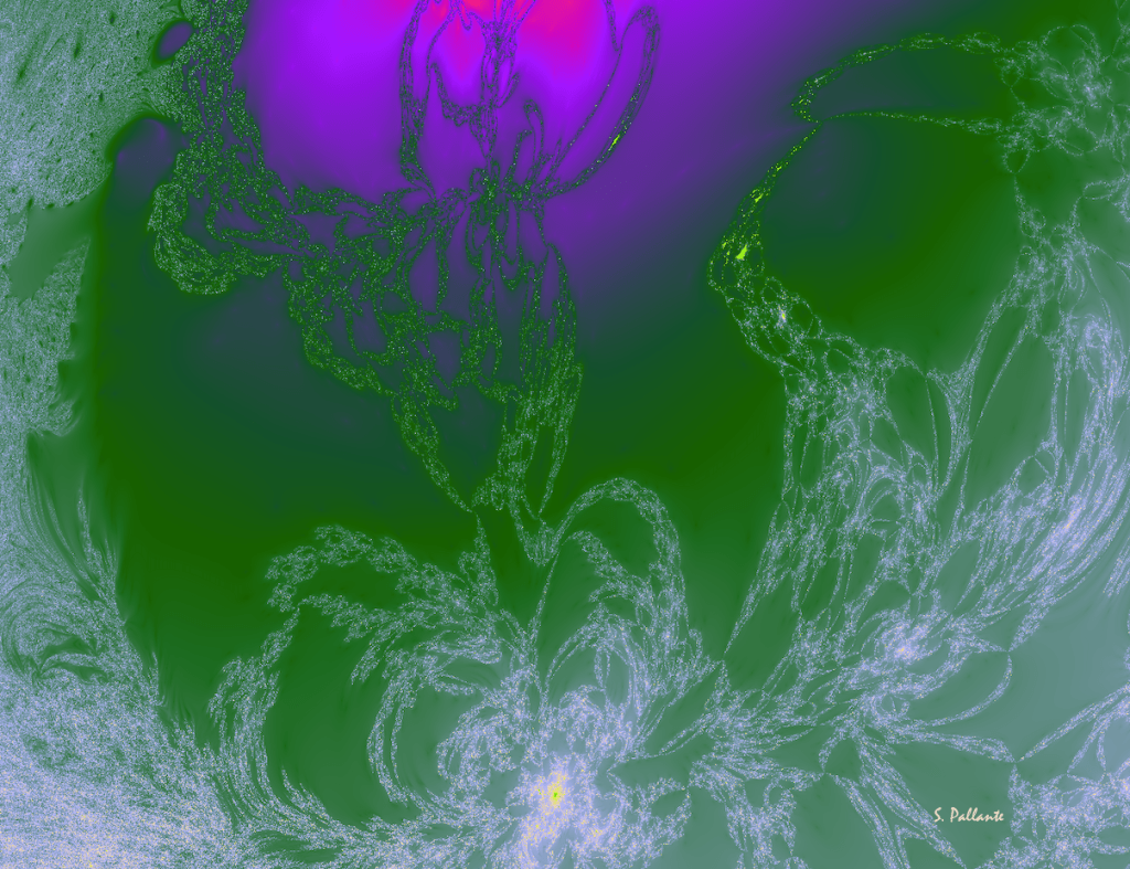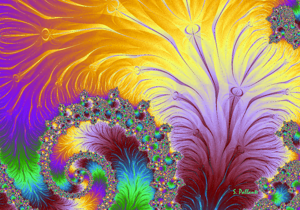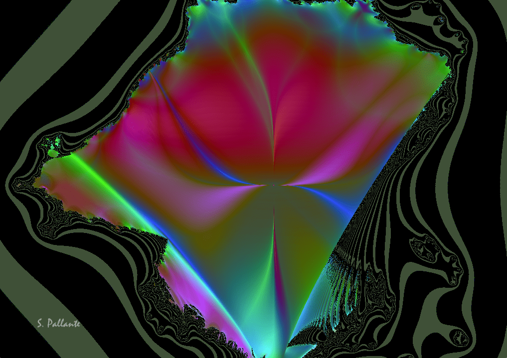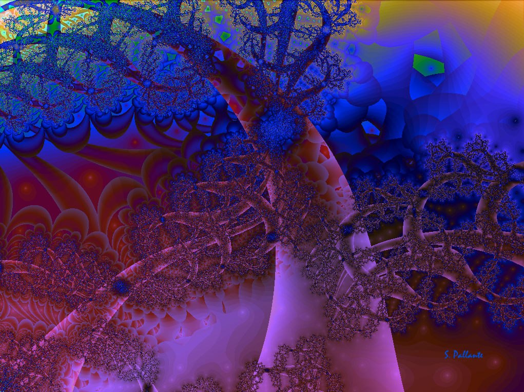 Non una descrizione realistica, ma una visione che nasce dall’incontro tra matematica, colore e movimento.